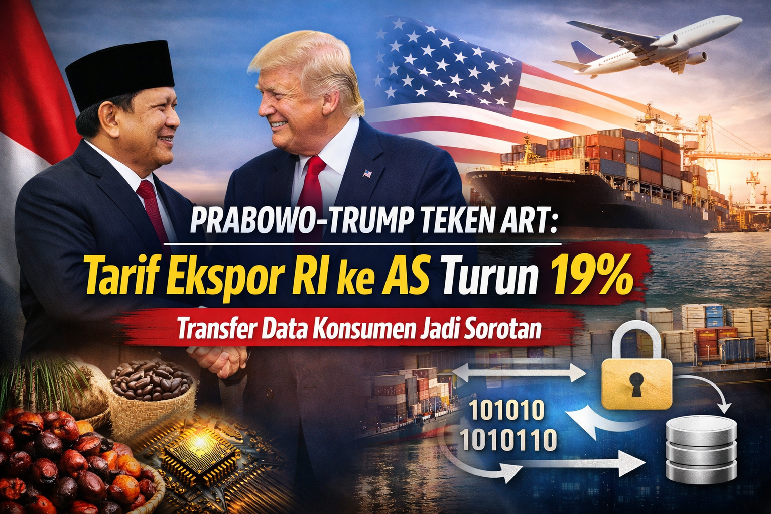 Jangkau.com – Jakarta: Pemerintahan Presiden Prabowo Subianto memperkuat posisi Indonesia dalam perdagangan global lewat penandatanganan Agreement on Reciprocal Trade (ART) bersama Presiden Amerika Serikat Donald Trump. Kesepakatan ini membawa dua isu utama: penurunan tarif impor untuk produk Indonesia di pasar AS dan komitmen transfer data konsumen lintas batas.